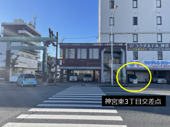 宮崎県宮崎市神宮東3丁目6-2 ラクダホテル神宮1階駐車場内 |